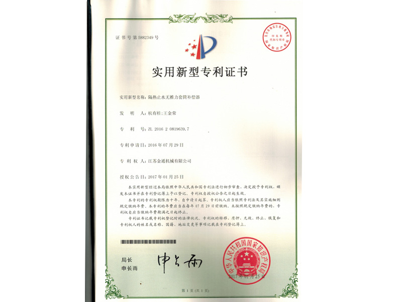 預(yù)硫化焊接式非金屬補(bǔ)償器專(zhuān)利證書(shū)